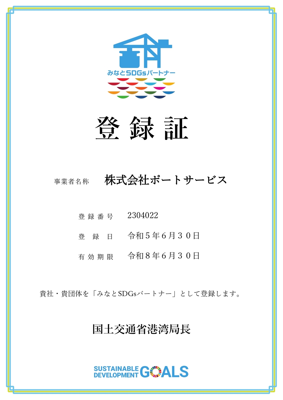 当社は、令和5年6月30日に「みなとSDGsパートナー」に登録されました。みなとSDGsパートナーに登録されています